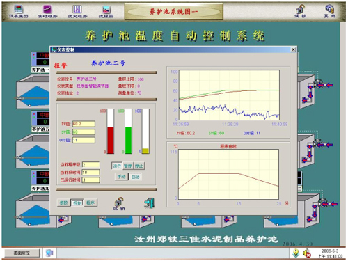 【水泥養(yǎng)護(hù)池1-12】的所有控制信息與數(shù)據(jù)信息都在控制室計(jì)算機(jī)上統(tǒng)一管理、分配。在計(jì)算機(jī)上對車間溫度進(jìn)行全方位的監(jiān)控,數(shù)據(jù)采集和各項(xiàng)事務(wù)的處理。