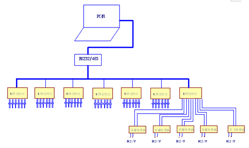 整個(gè)空調(diào)數(shù)據(jù)采集、監(jiān)控系統(tǒng)由一臺(tái)上位PC機(jī)、1個(gè)宇電RS232/RS485轉(zhuǎn)換器、7臺(tái)AI人工智能高精度6路巡檢儀、37個(gè)鉑熱電阻Pt100、4個(gè)流量傳感器及一個(gè)壓差變送器組成。利用具有通訊功能的AI-706M6路巡檢儀對(duì)現(xiàn)場(chǎng)數(shù)據(jù)進(jìn)行采集,測(cè)量精度為0.2級(jí)。在巡檢儀上可直接顯示采集的數(shù)據(jù),并通過(guò)RS-485串行通訊和上位機(jī)進(jìn)行通訊,實(shí)現(xiàn)37個(gè)通道溫度、4個(gè)通道流量及1個(gè)通道壓差的集中監(jiān)控。AI調(diào)節(jié)器上的所有參數(shù)可以在上位機(jī)中顯示,也可用上位機(jī)設(shè)定下載。